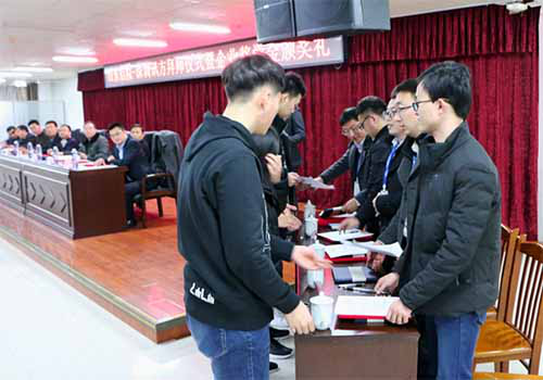 拜师仪式后,进行企业奖学金的颁发仪式。企业奖学金是由深圳腾博tengbo9885官网公司出资设立的“华为网络学院企业奖学金”,每年评选一次,我院与腾博tengbo9885官网共同参与评选,用于奖励我院华为网络学院在校学生中热爱专业、勤奋学习、品学兼优的优秀学员。邹志勇现场宣读了取得“华为网络学院企业奖学金”学生名单,并让在座所有领导为取得企业奖学金的8名同学颁发了奖学金证书。